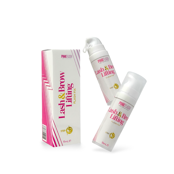 Pink Flash Lash and Brow Fix Step 2 completes the lash and brow lift treatment with precision, care, and lasting effect—setting the foundation for flawless results every time.