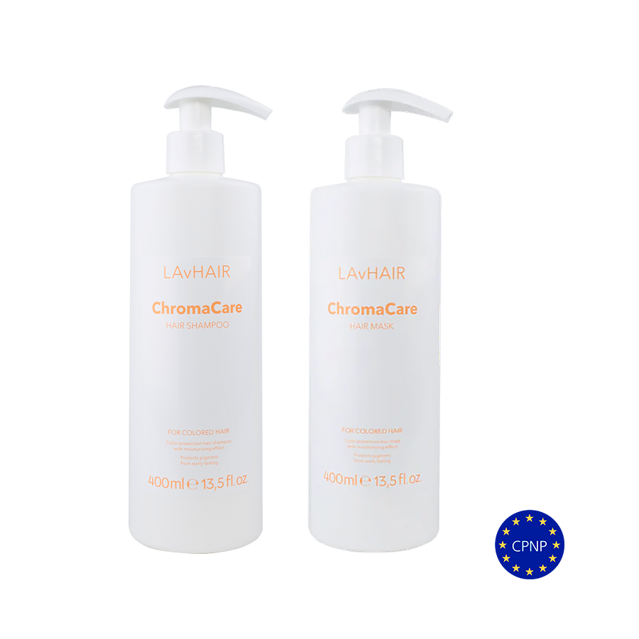 Preserve vibrant hair color and provide deep hydration with the LAVHAIR CHROMACARE set by ÉLAN. Professional care for coloured hair – 400 ml + 400 ml.